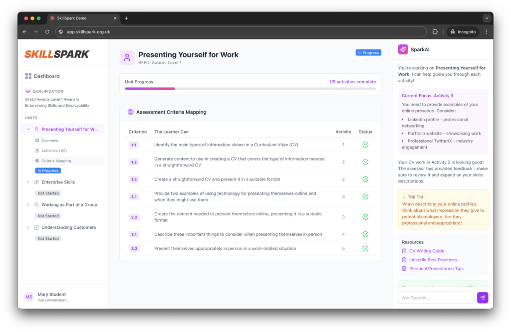 SkillSpark is designed for quick deployment. Whether you're planning ahead or need to mobilise provision at short notice, everything's in place. Just sign up and start delivering.